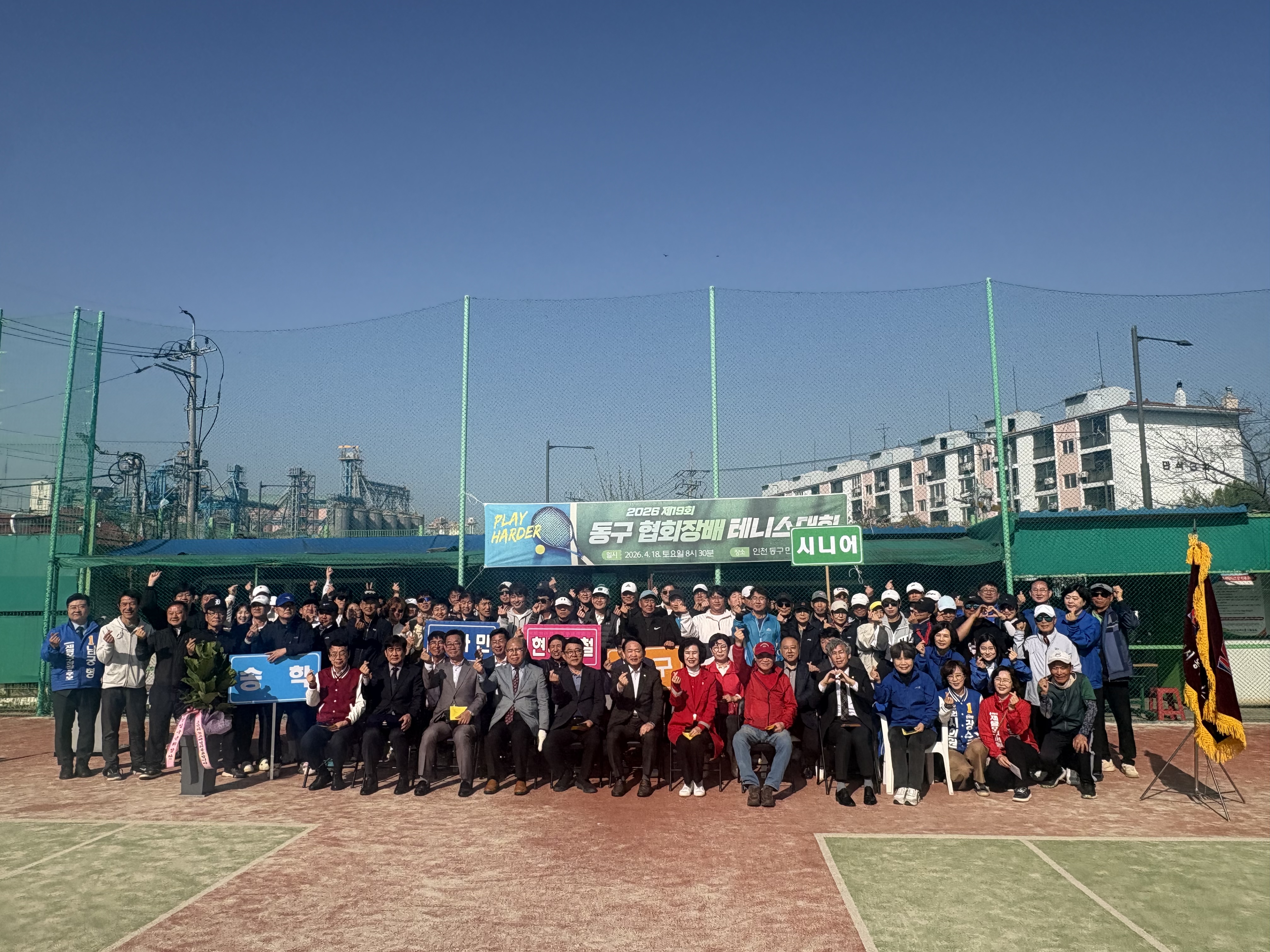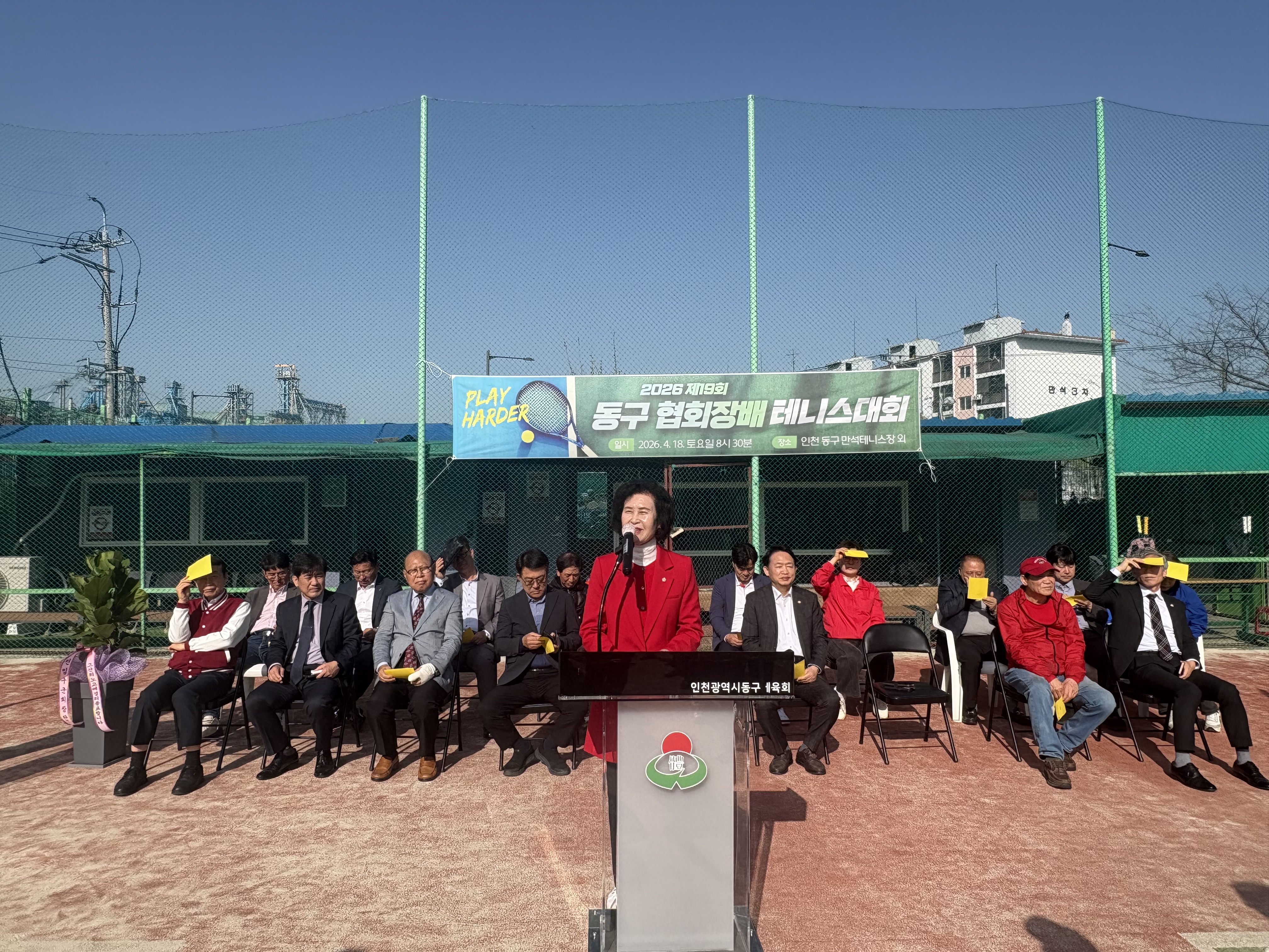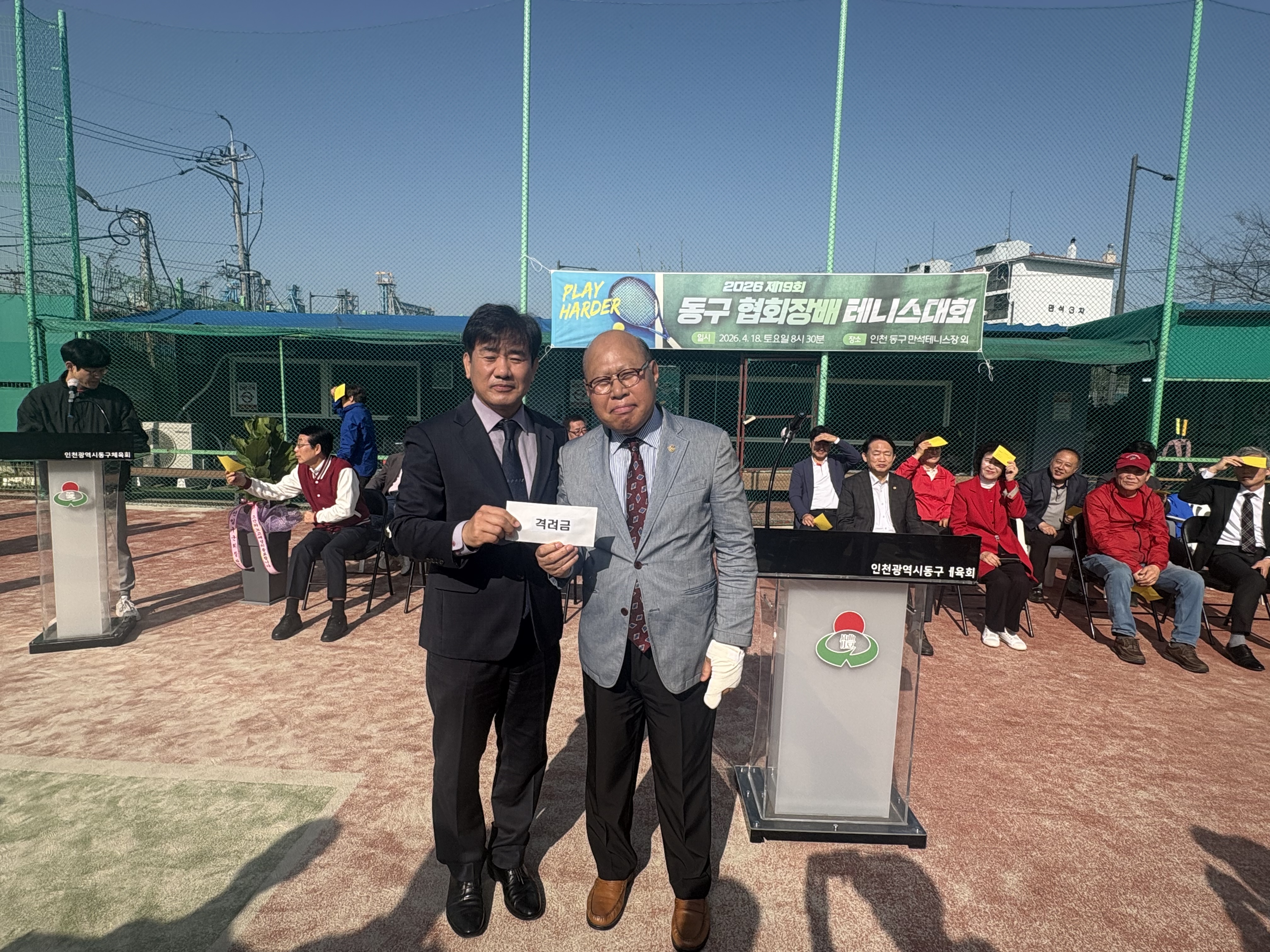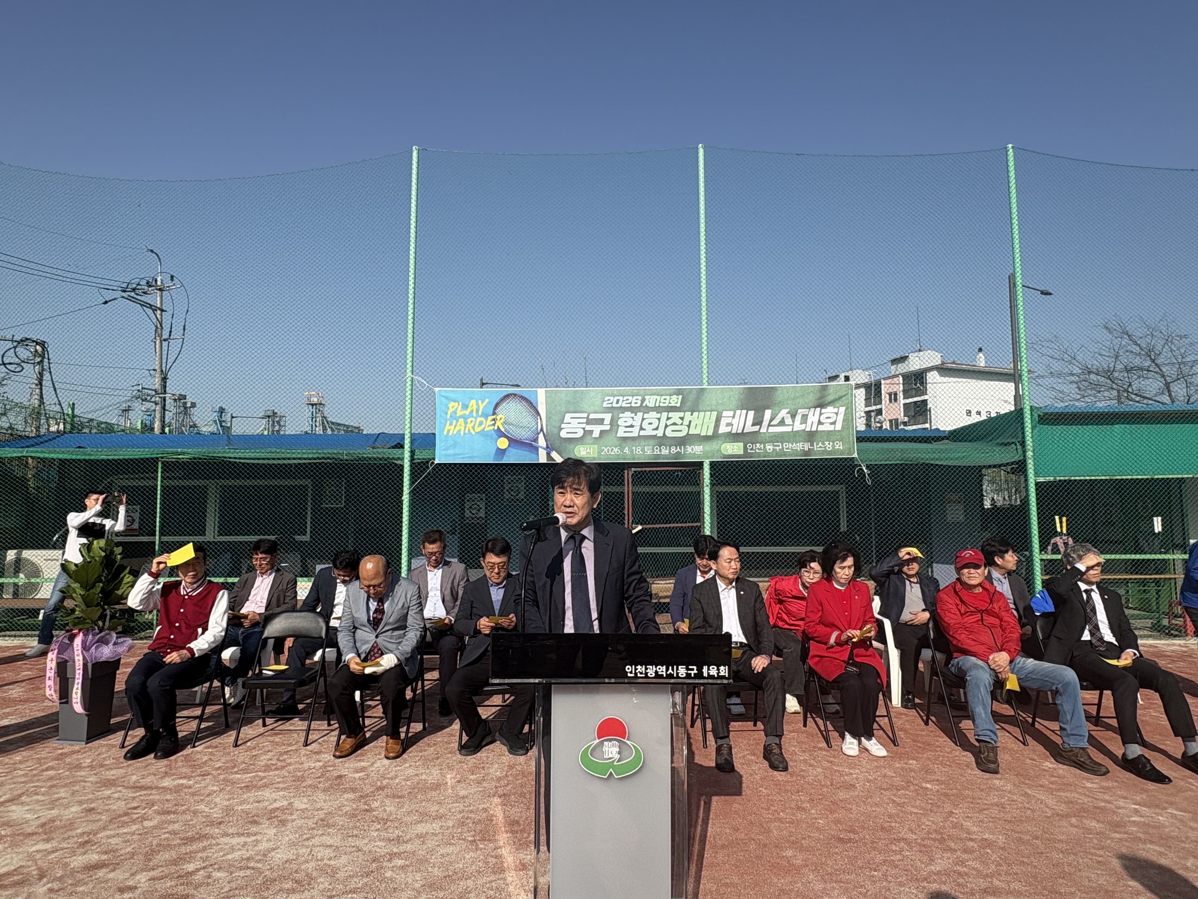 자리를 빛내주신 인천광역시동구체육회 임원분들과 내빈 여러분, 테니스 동호회 회원 여러분께 감사드립니다.