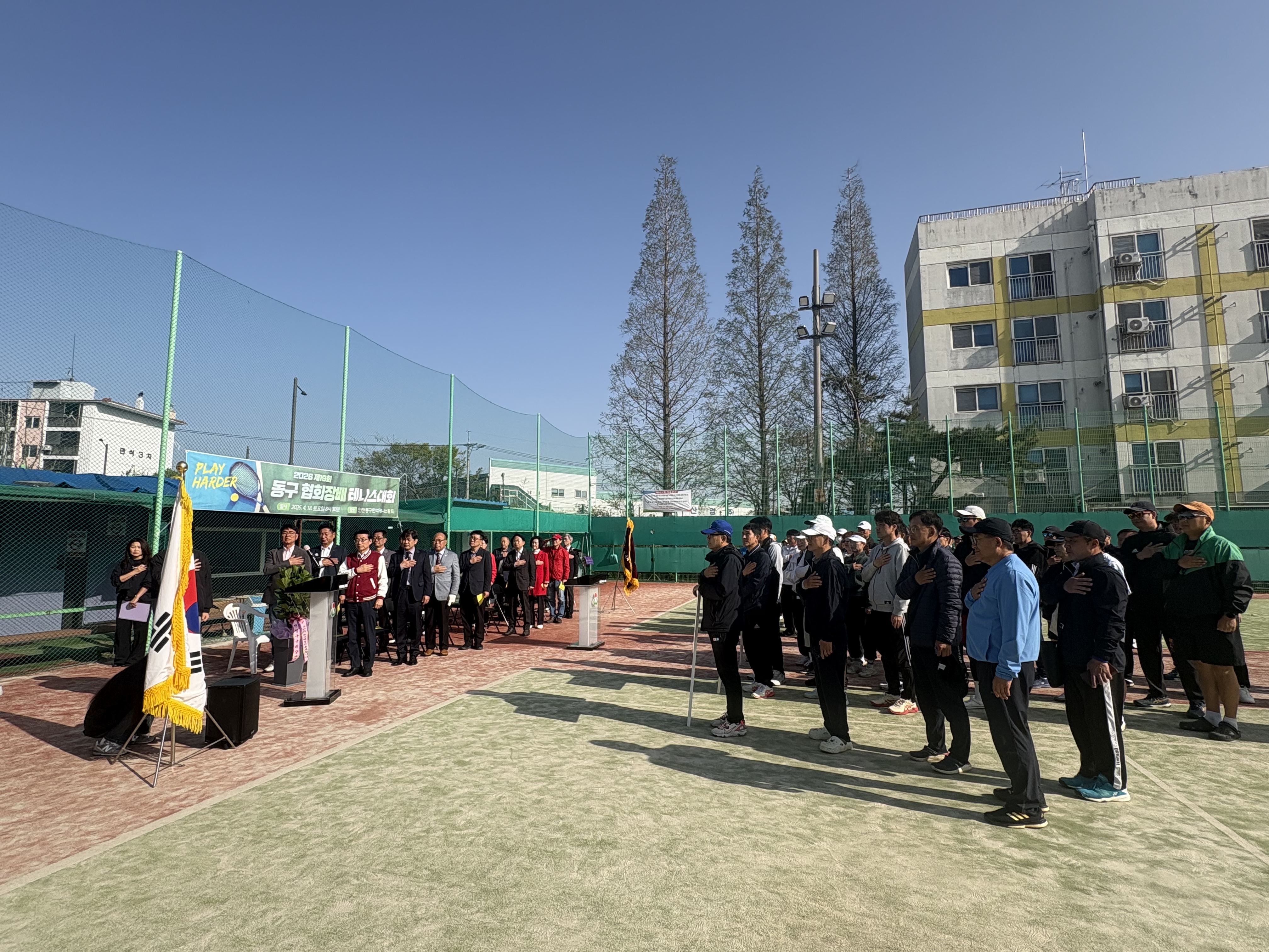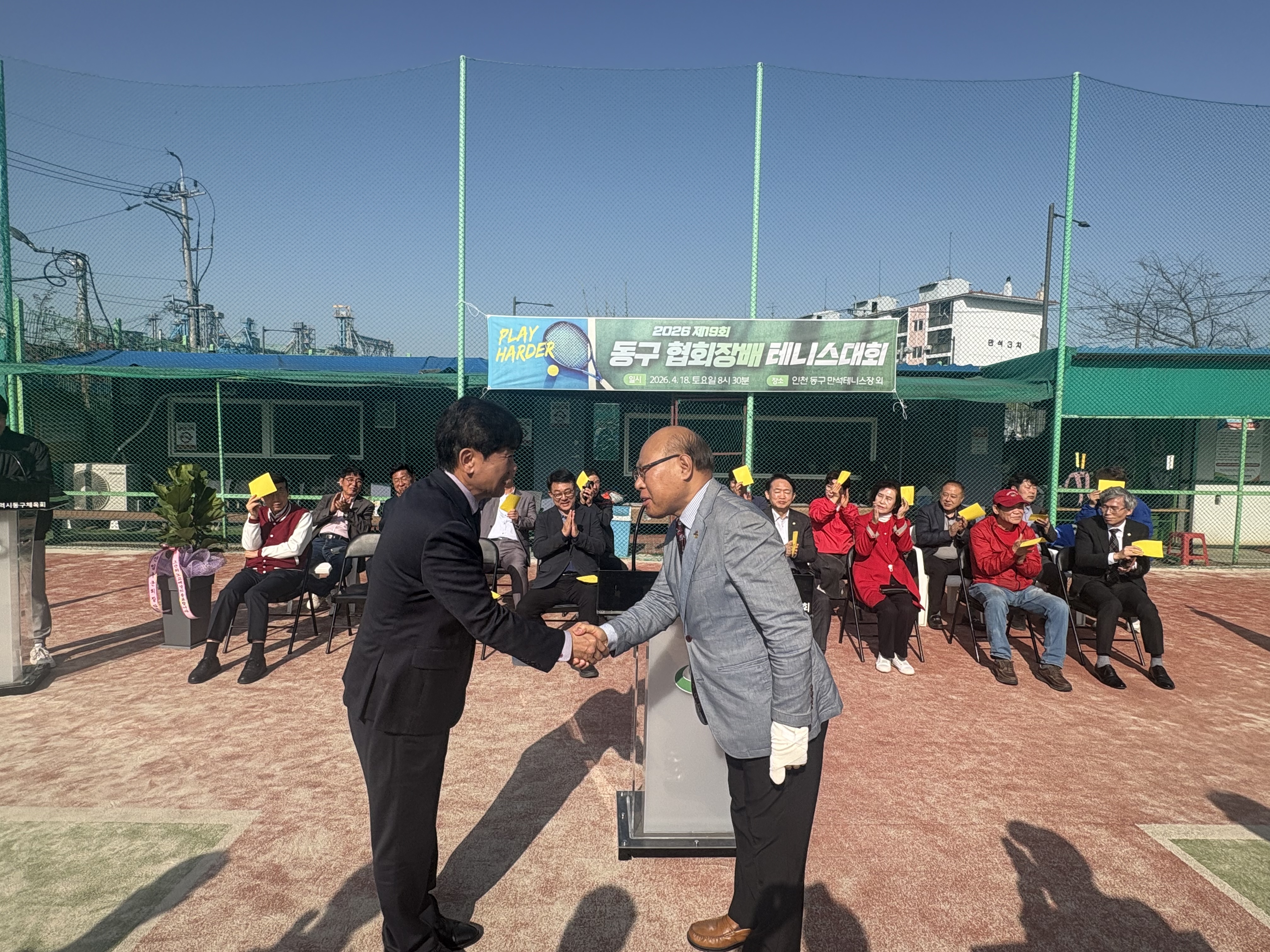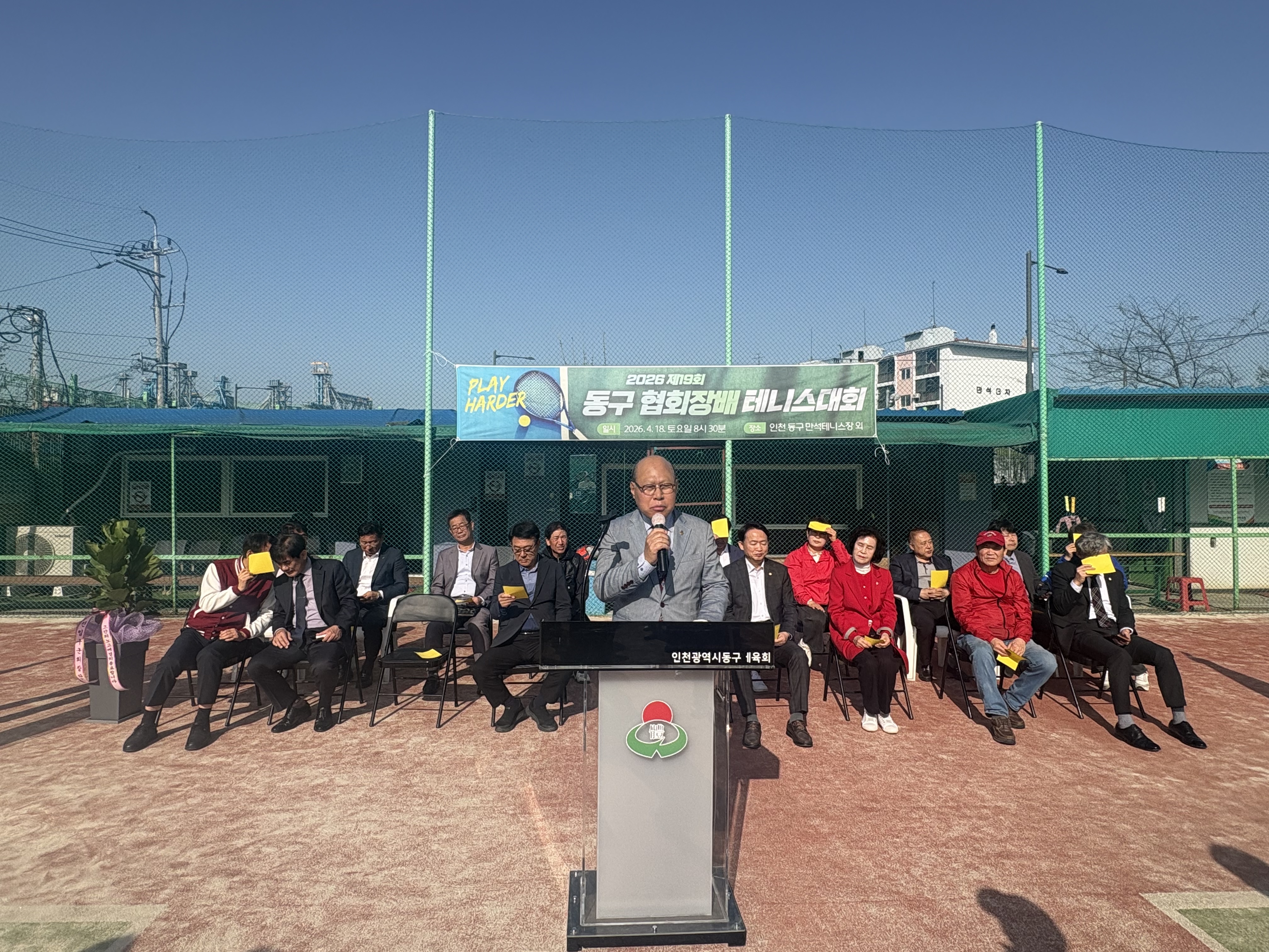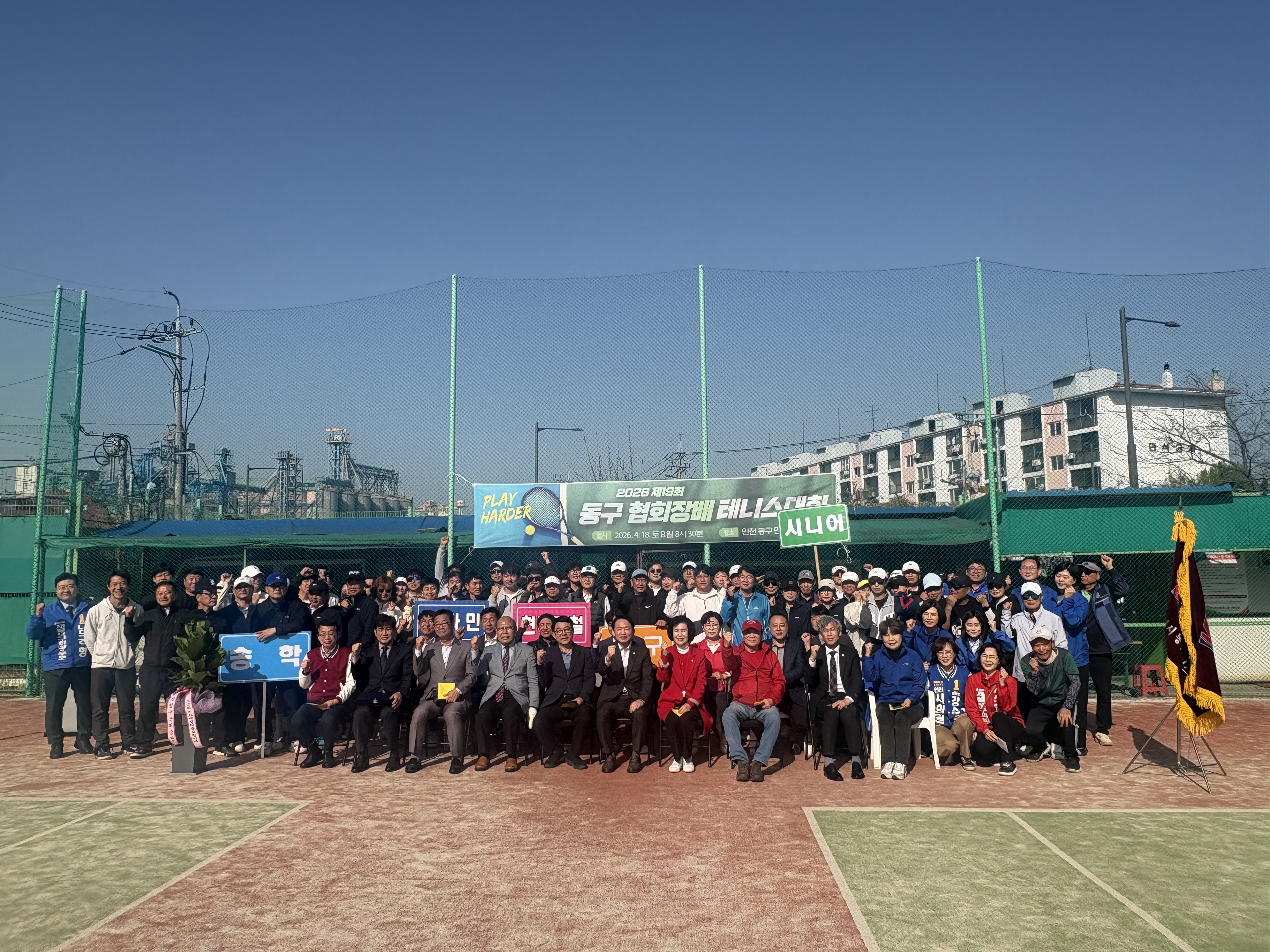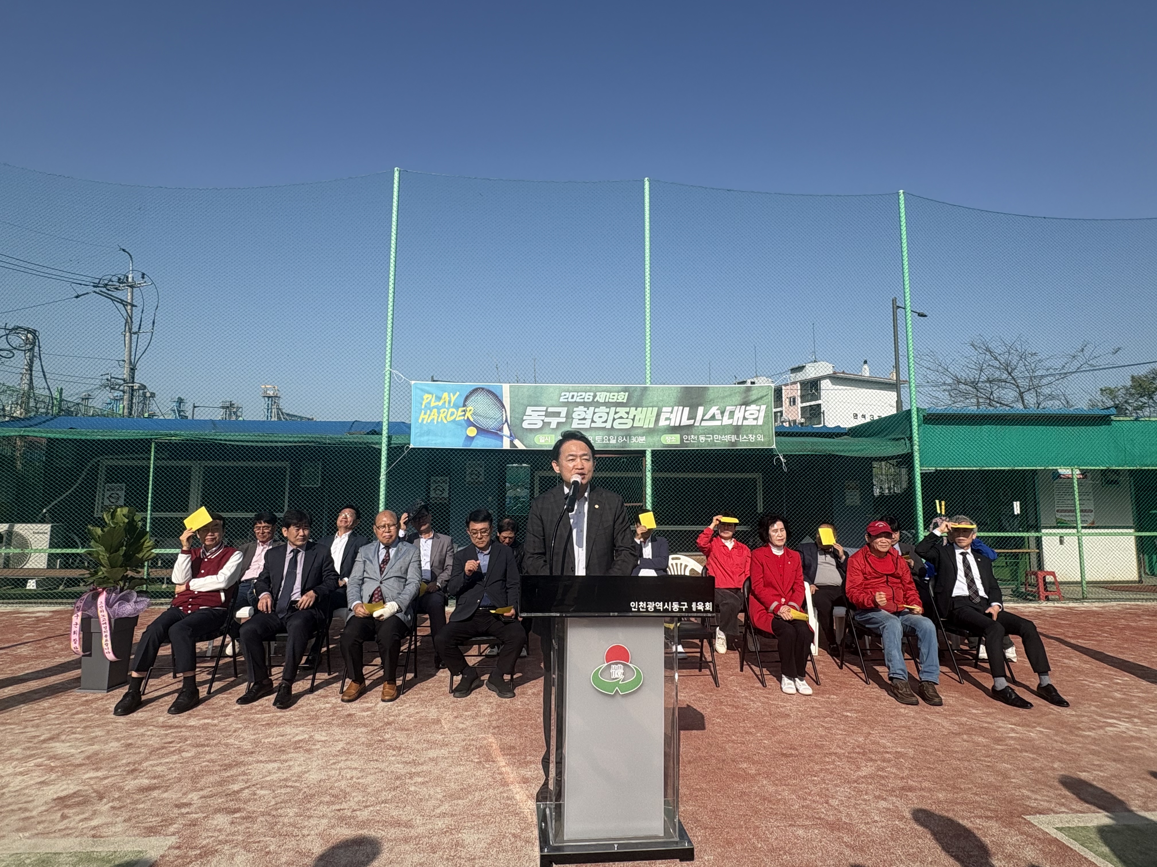 자리를 빛내주신 인천광역시동구체육회 임원분들과 내빈 여러분, 테니스 동호회 회원 여러분께 감사드립니다.